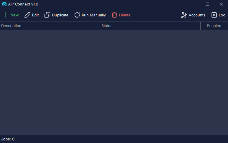 After adding an account, you will now be able to set up jobs in the Aiir Connect app: