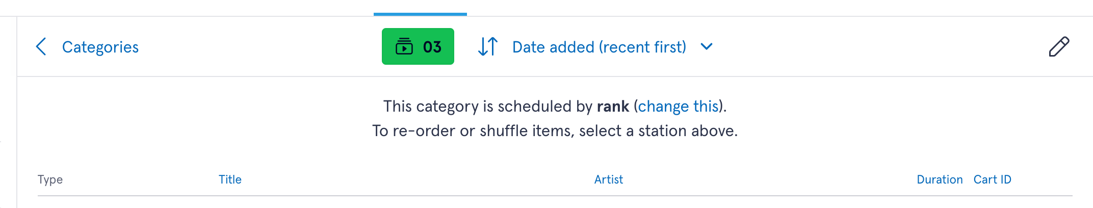 Shuffling a category applies per station, so if a category is shared across multiple stations in your Scheduler library, you may need to shuffle it for each station.