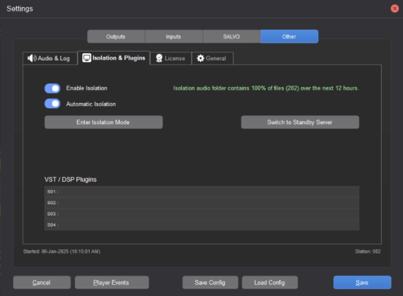 - In Audio Engine on your standby server, go to Settings > Other > Isolation & Plugins.